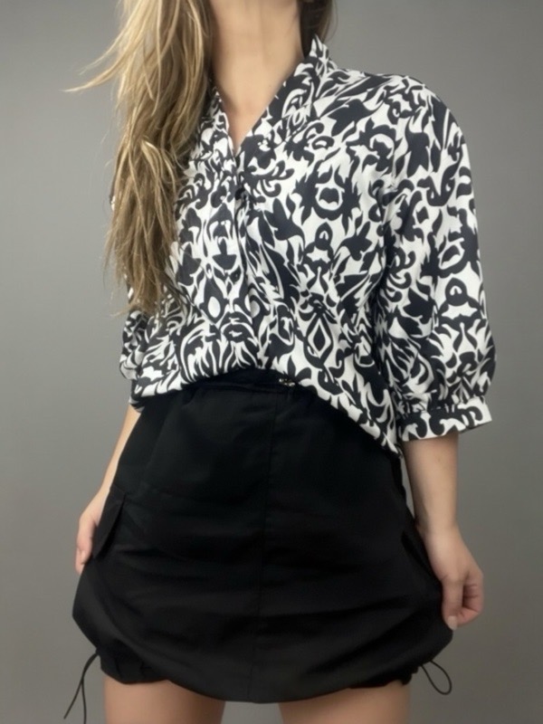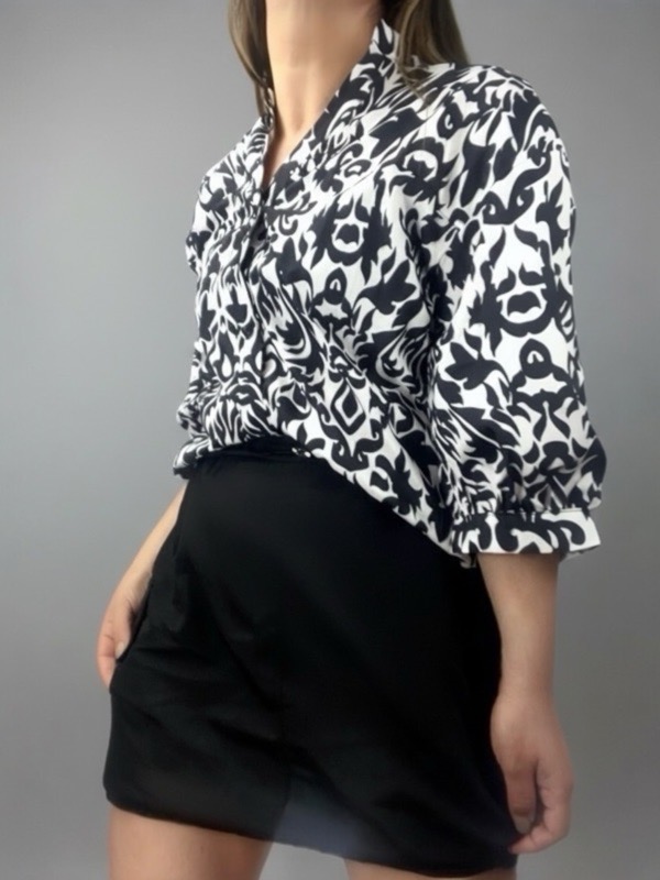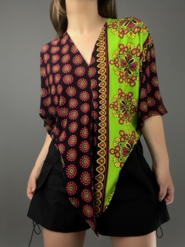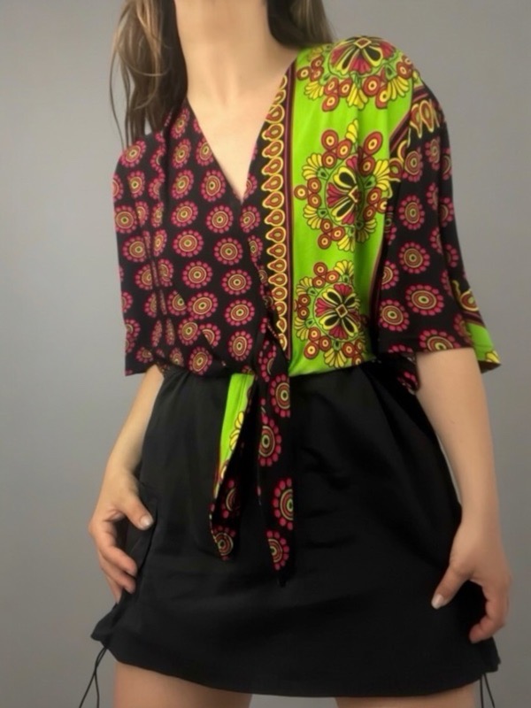 Blusa Amarena di Notte. Un clásico moderno con el encanto del diseño italiano.La blusa “Amarena di Notte” está confeccionada en lycra suave y fluida con diminutos puntos fucsia que contrastan sobre su fondo burdeos profundo, evocando el brillo de las cerezas oscuras bajo la noche. Su corte versátil con amarre frontal permite ajustar la prenda al gusto, adaptándose perfectamente desde una talla S hasta una XL, brindando comodidad y estilo para todos los cuerpos.El escote en “V” y las mangas amplias aportan frescura y movimiento, haciendo de esta pieza un infaltable para cualquier ocasión. Combínala con faldas, jeans o pantalones anchos y deja que su elegancia relajada hable por ti.