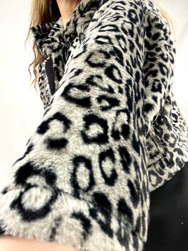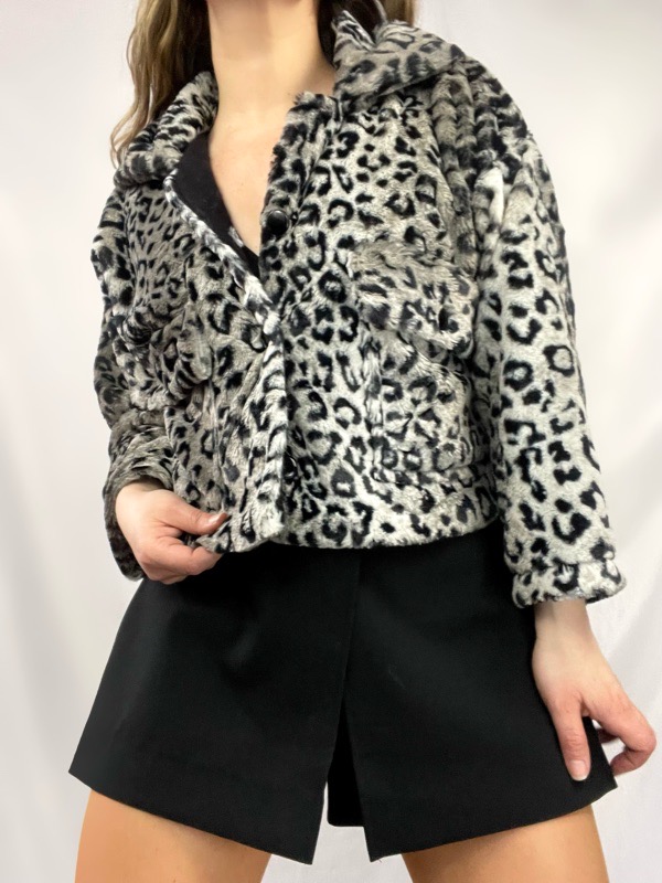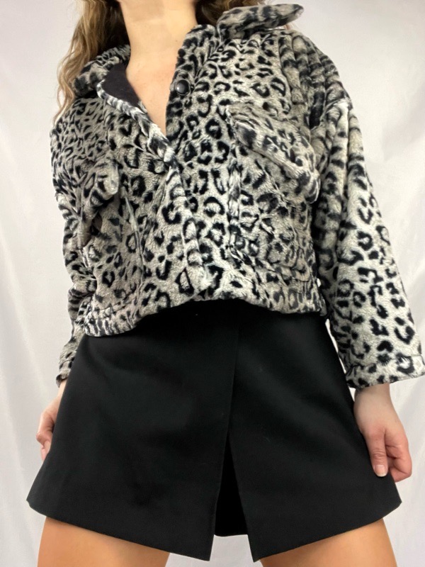 Suave, abrigada y con mucho estilo. Esta chaqueta corta de pelito efecto felpa luce un animal print en tonos neutros que nunca pasa de moda. De corte oversize, favorece desde talla S hasta XL, permitiendo usarla sobre prendas ligeras o más abrigadas.
