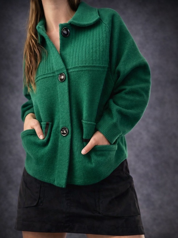 Chaqueta Valentina Paño de Lana Elasticado Verde