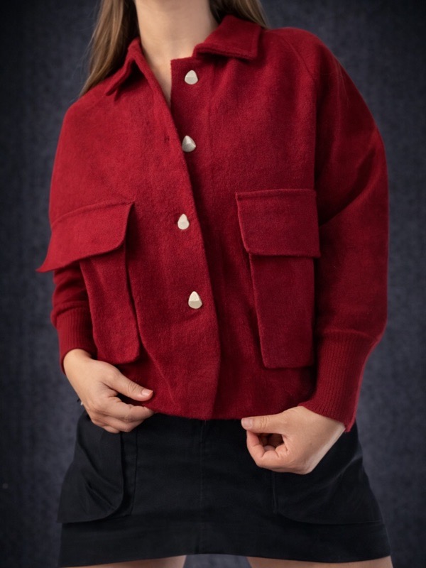 Nuestra Chaqueta Valeria es una prenda femenina, original y con ese toque especial que transforma cualquier look en algo mucho más encantador. Confeccionada en paño de lana color rojo, entrega abrigo suave, textura acogedora y una silueta cómoda ideal para la temporada de otoño e invierno.