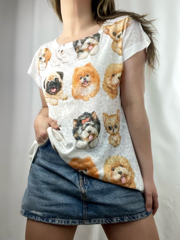 Directamente traída desde Brasil, la polera Marina es una explosión de dulzura y alegría. Confeccionada en algodón suave y liviano, su diseño está lleno de adorables caritas de perritos que transmiten ternura y energía positiva.
