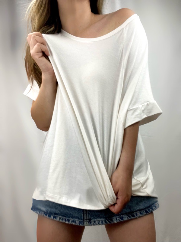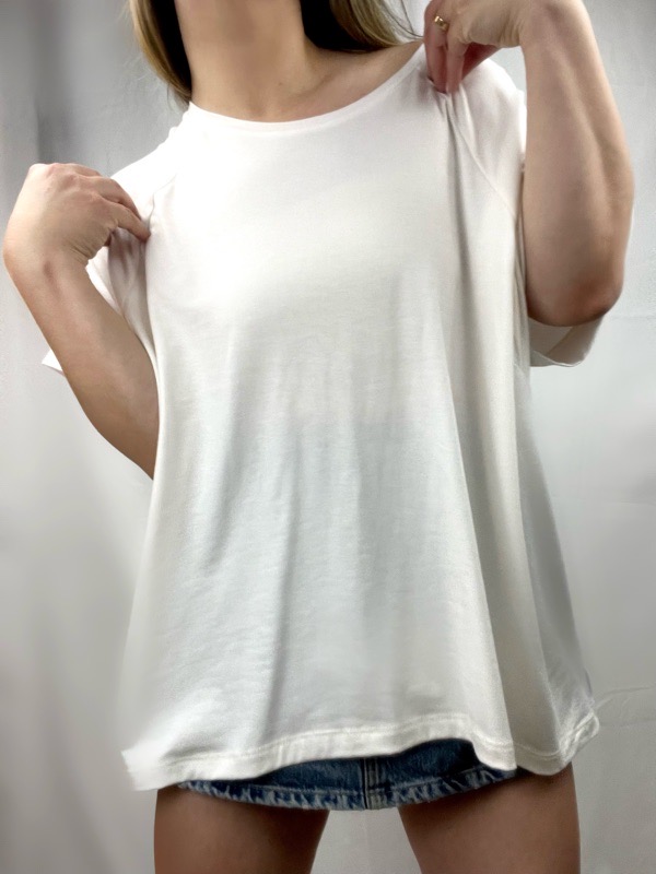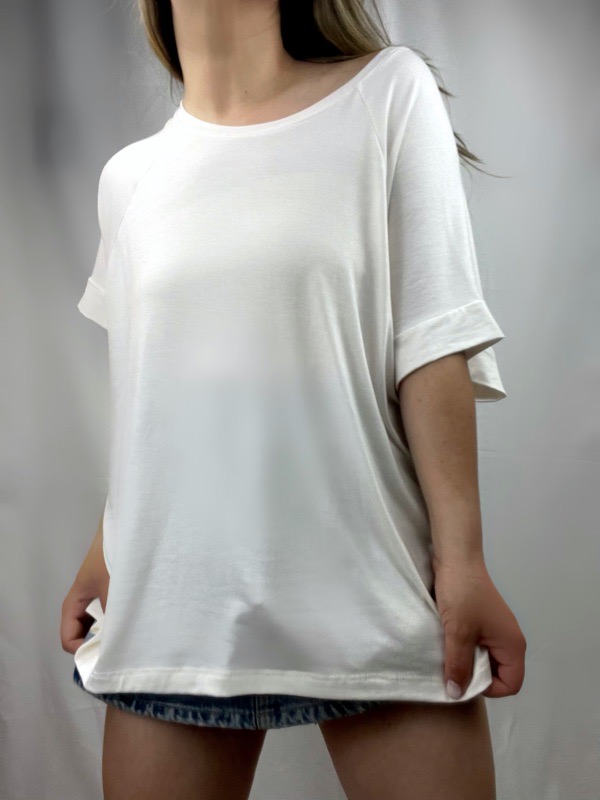 Polera oversize confeccionada en algodón modal elasticado, de textura ultra suave, fresca y liviana. Su calce holgado se adapta cómodamente a distintas siluetas sin marcar. Cuenta con escote amplio tipo bote, que permite usarla caída sobre un hombro, y manga corta suelta para mayor comodidad.