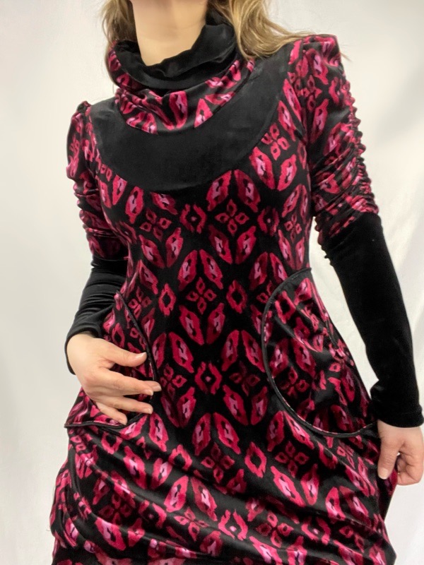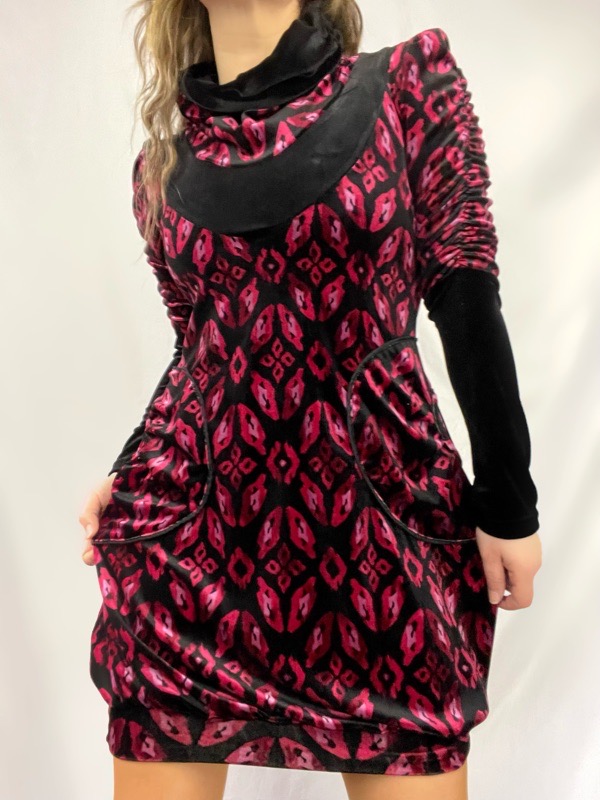 Como un abrazo tibio en medio del invierno… así se siente este nuevo vestido globo. En color fuscia con negro diseño animal print celebra la dulzura y fuerza de lo femenino, con una textura suave y envolvente gracias a su mezcla con lana cachemira.